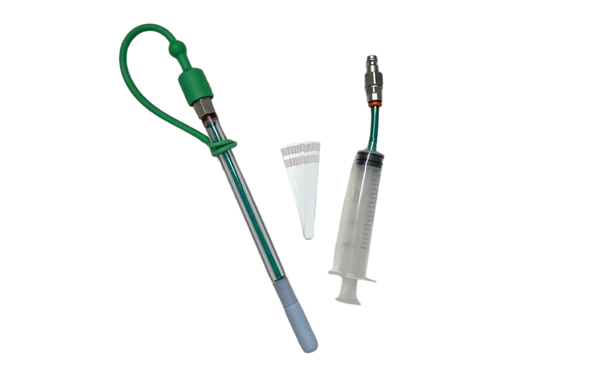 - Jeringa con conector metálico: Facilita la extracción precisa y sin complicaciones de las muestras.